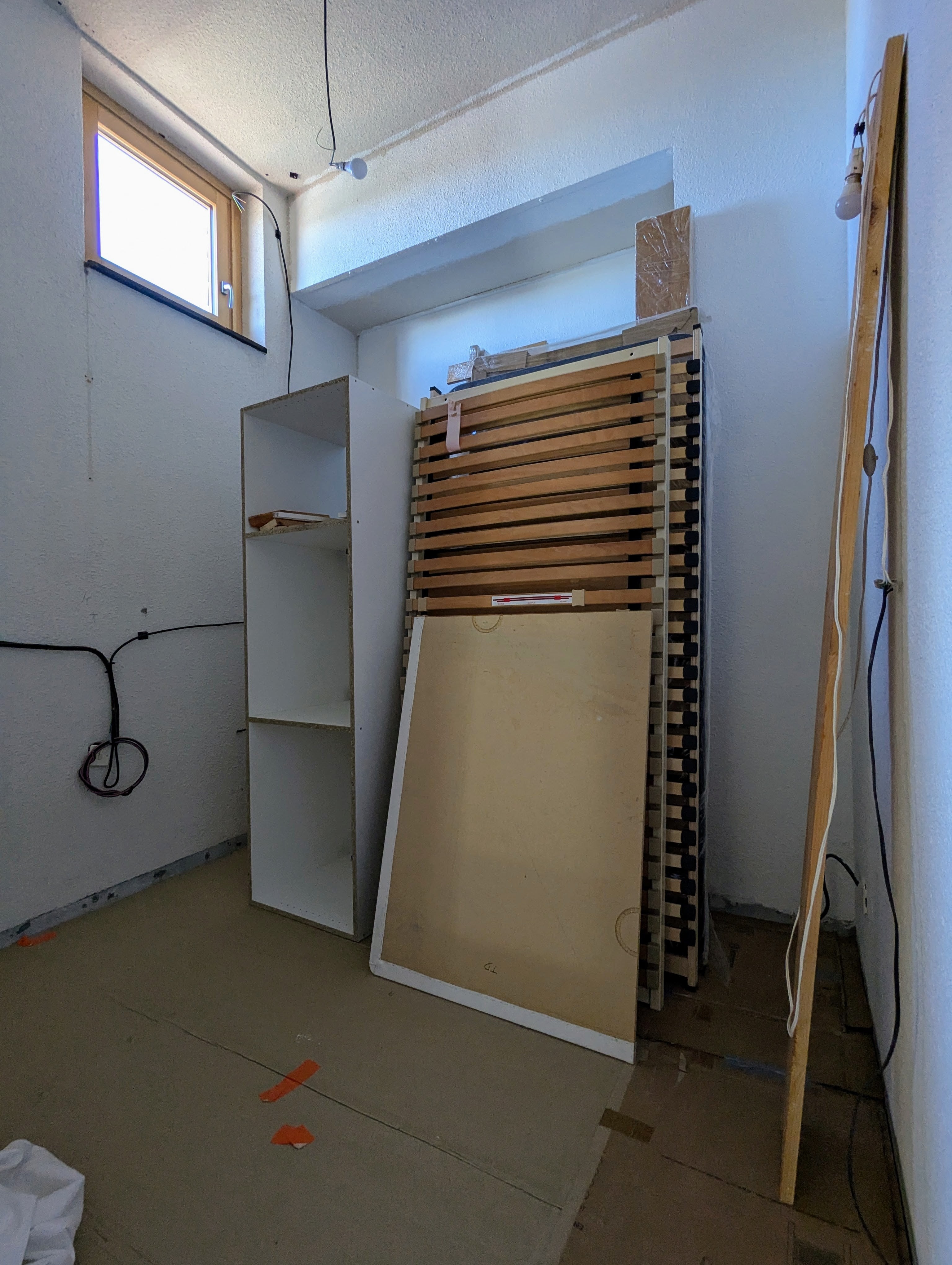 chambre 2 : 6.5 m2, 3/5 personnes 3 lits superposes 80 ( hauteur 3.5 m) plus un lit tiroir qui se mettra a niveau dont le matela 110 debordera afin ne pas sentir le rebord, plus le lit simple devant la fenetre ( voir photo)