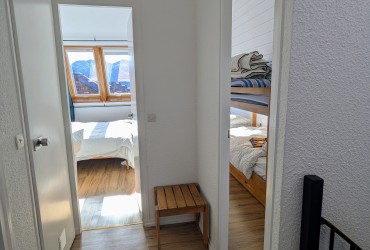 chambre 4 :7 m2 2/3 personnes lit double de 140 plus un lit superpose au dessus de la porte d entree