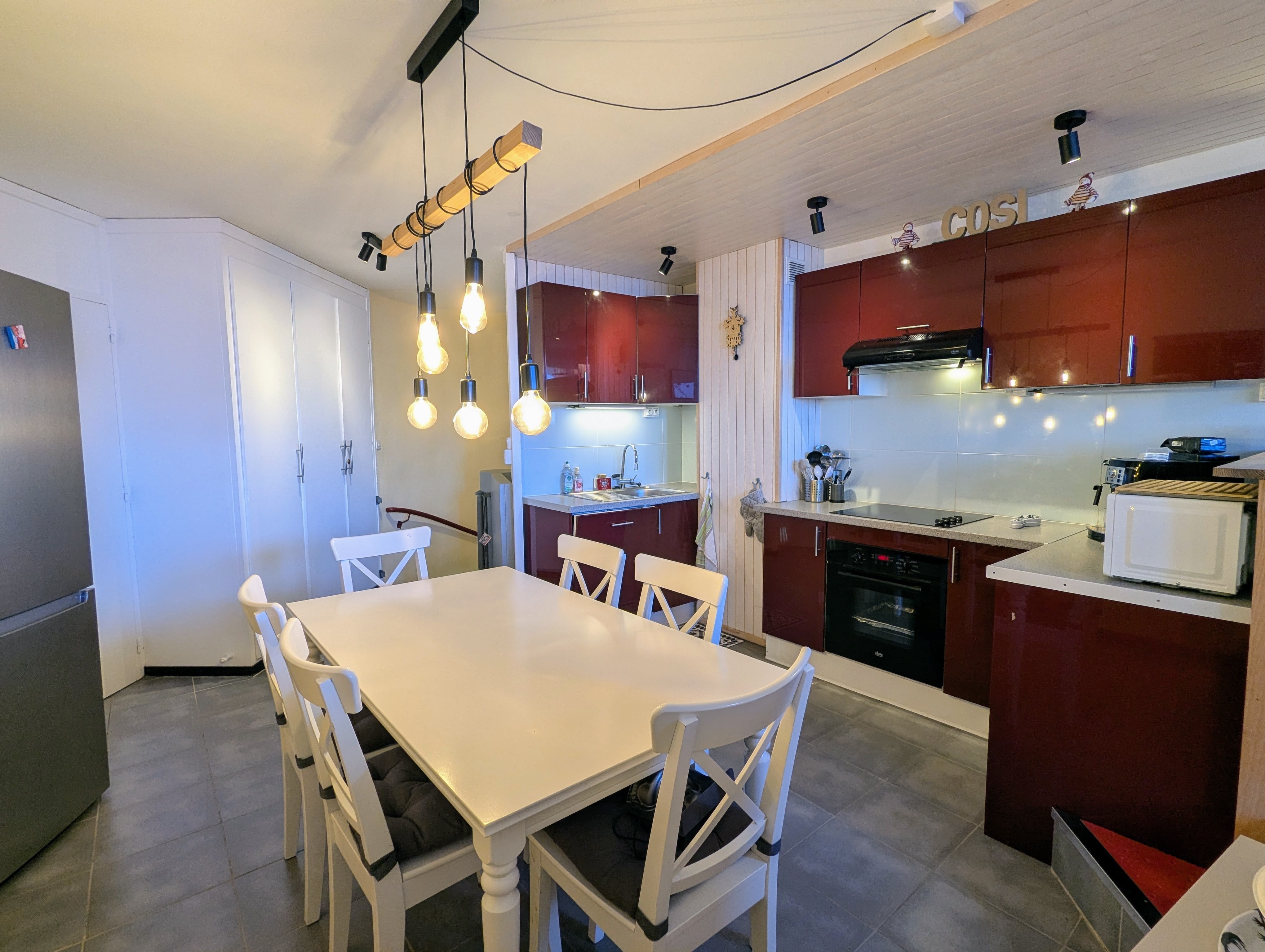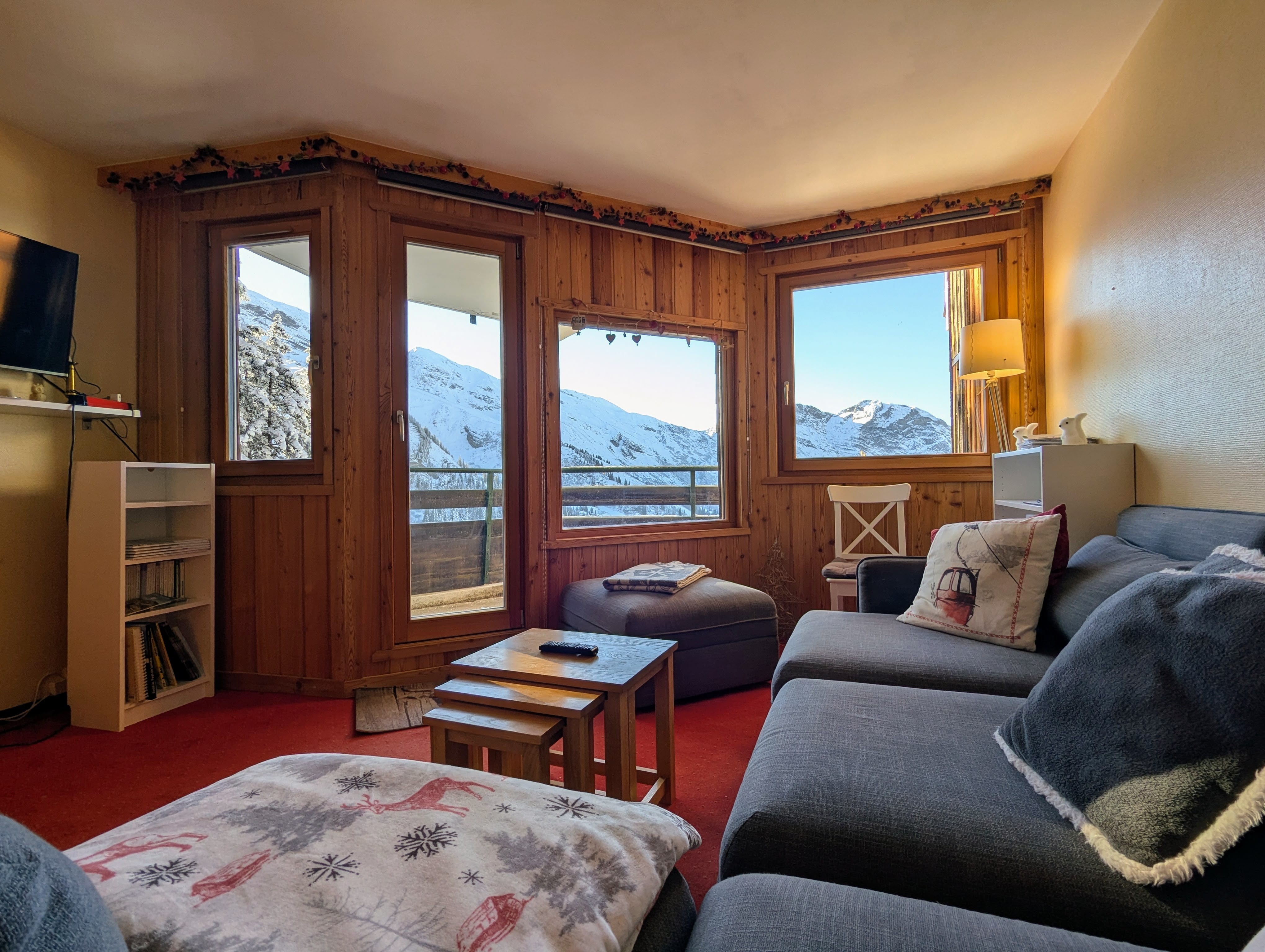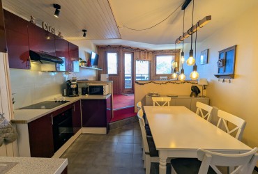 - Le séjour est composé d’une belle cuisine équipée et son espace repas confortable pour 6 personnes, ouverte sur un salon lumineux équipé d’un canapé convertible depuis lequel vous pourrez admirer le magnifique panorama sur le domaine skiable, accès à la terrasse offrant une superbe vue sur la Vallée de Morzine et les couchers de soleil .