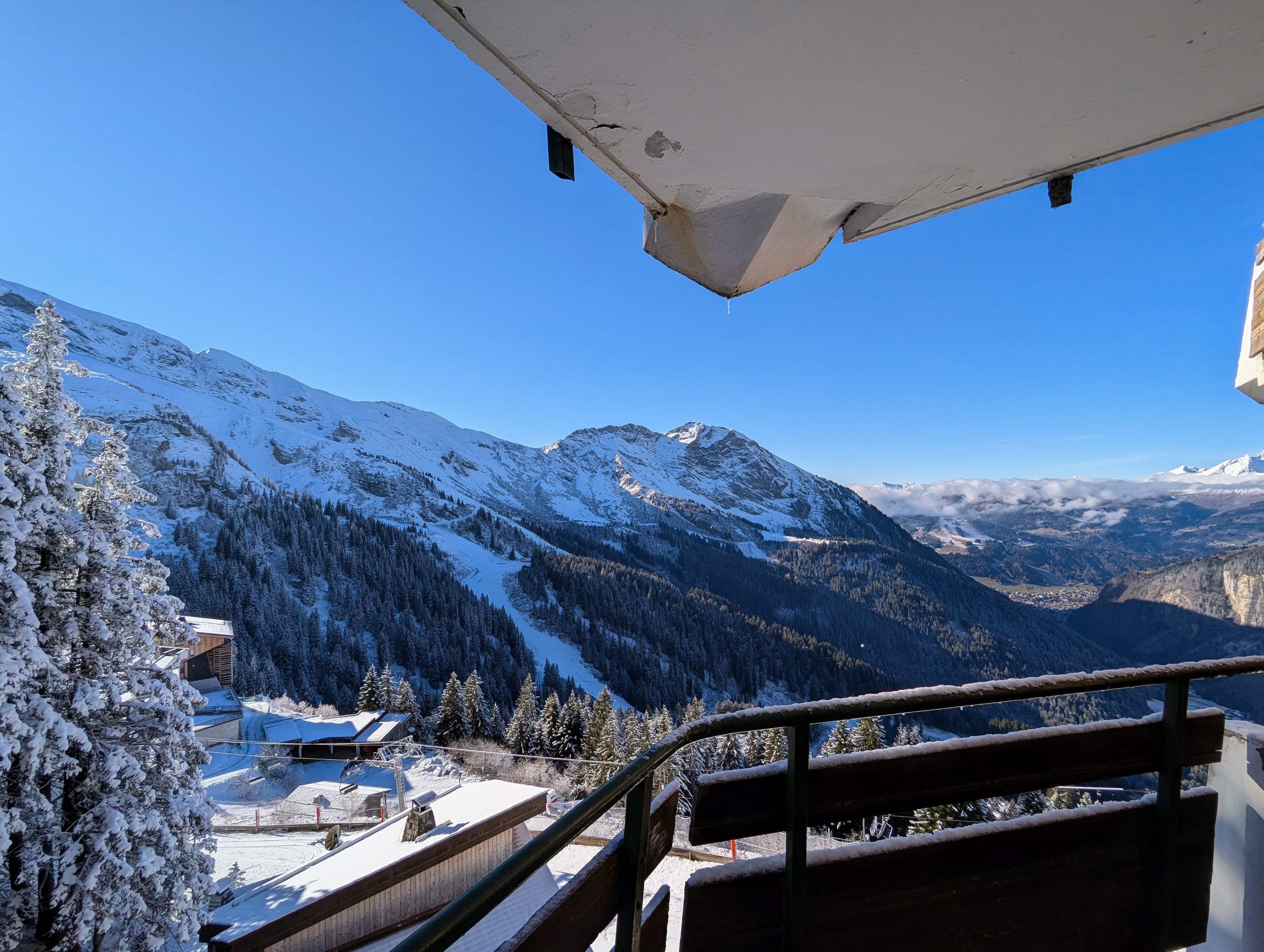 Sur la mythique Promenade des Ardoisières, au calme, mais tout proche du centre et de l’arrivée du téléphérique des Prodains , ce grand 3 pièces en duplex au 7 ème étage du Sassanka, bénéficie d’une belle exposition Sud-Sud-Ouest et d’une superbe vue sur la vallée de Morzine et le domaine skiable.