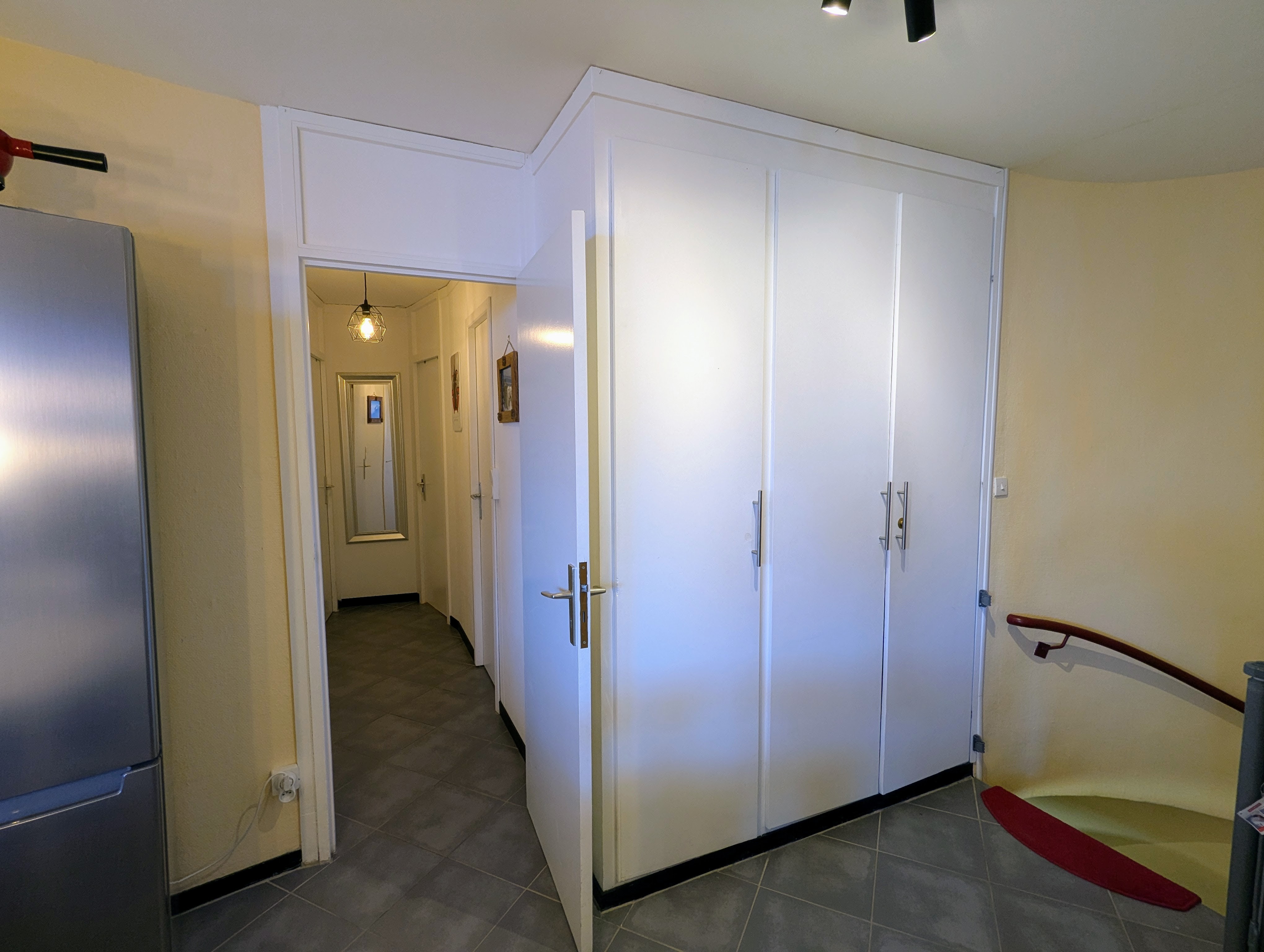 Après avoir monté l’escalier de l’entrée, vous trouverez tout l’espace de l’appartement: