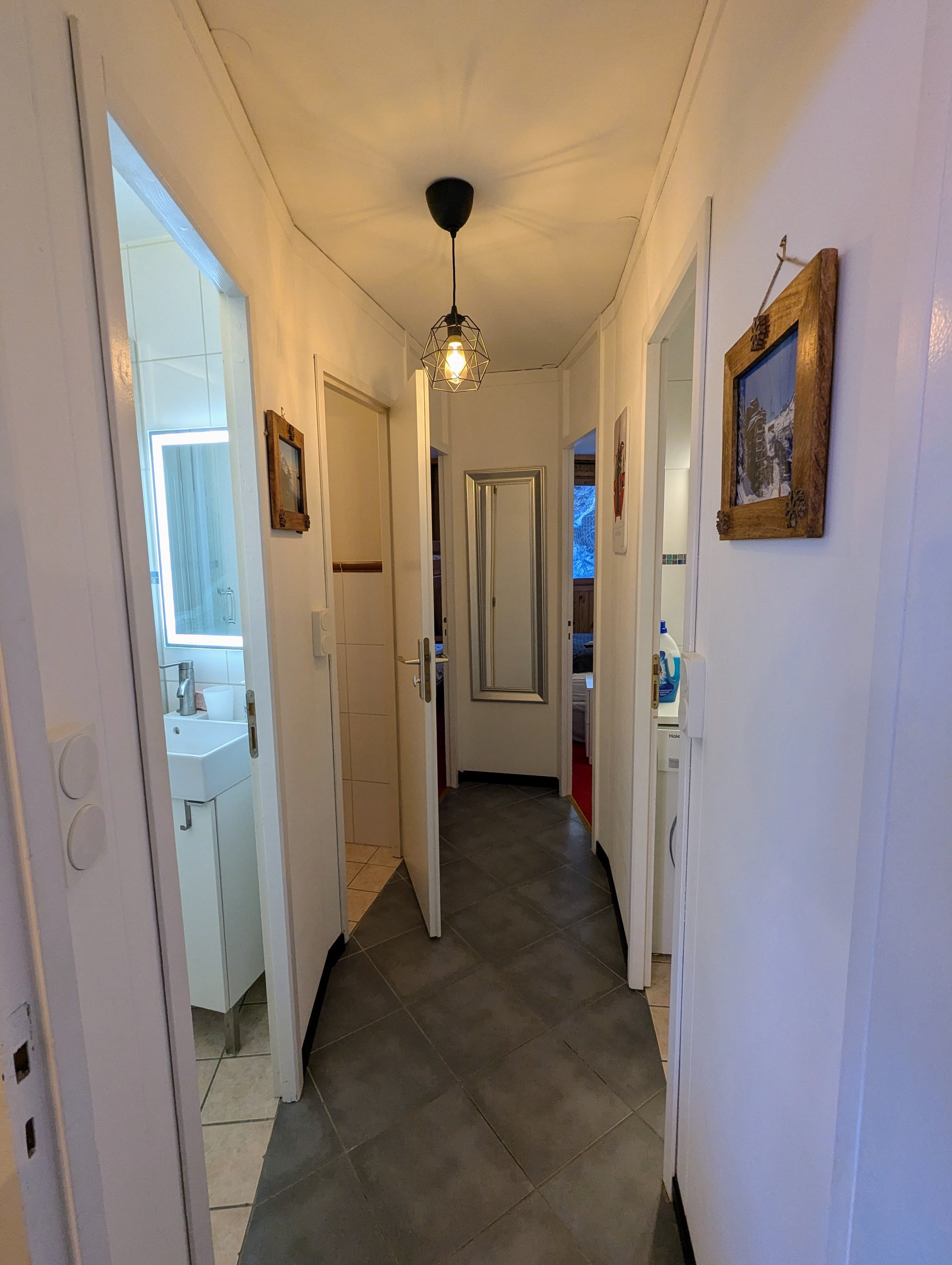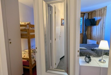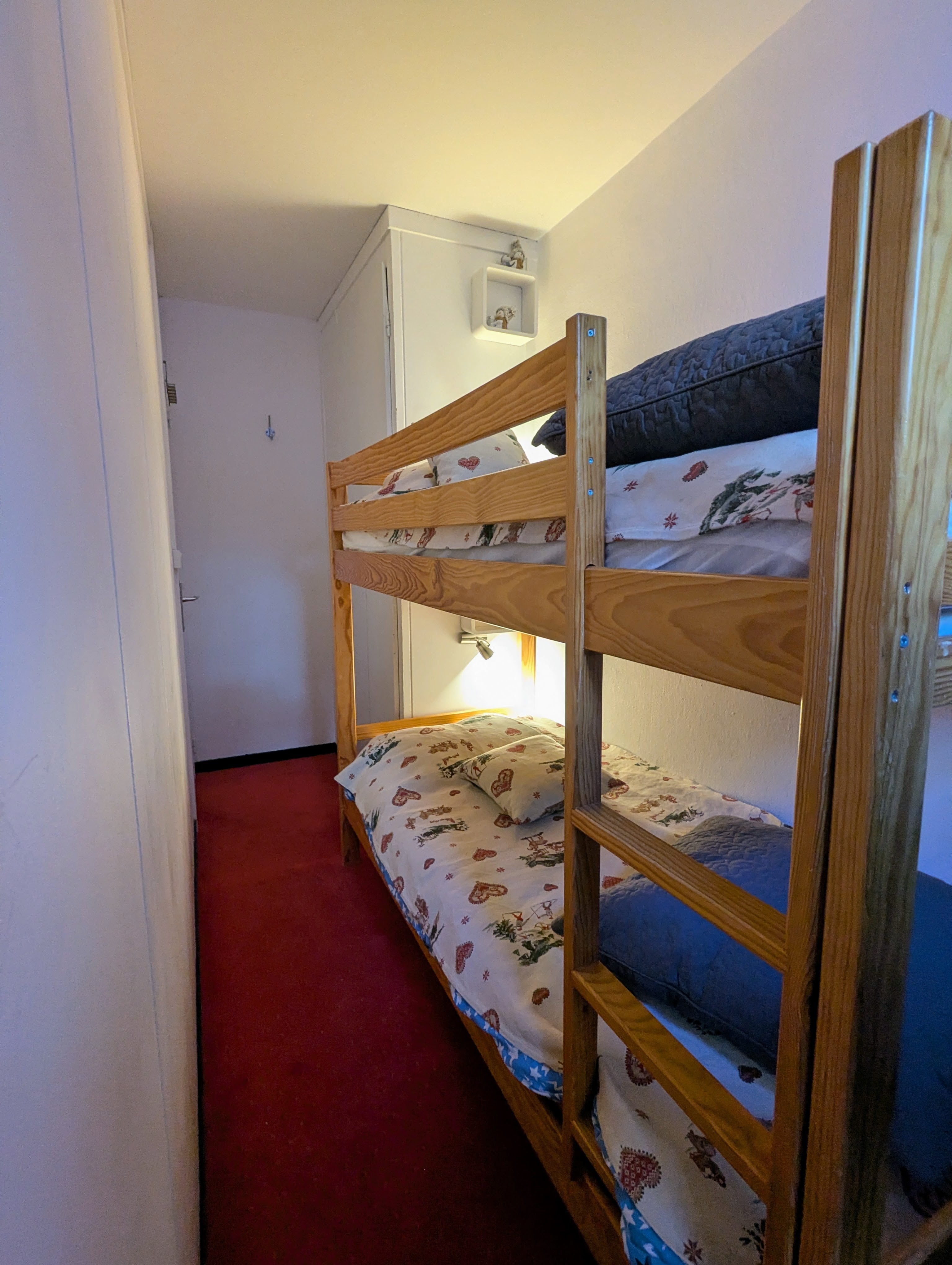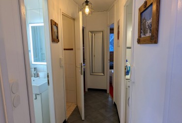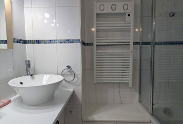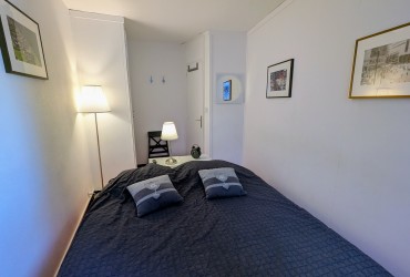- L’espace nuit, indépendant du séjour (accès par couloir fermé) se compose d’une chambre double, d’une chambre avec lits superposés, toutes deux dotées de grands placards. Cet espace comprend également une salle d’eau avec douche, une salle de bain avec baignoire et machine à laver, ainsi qu’un WC indépendant.