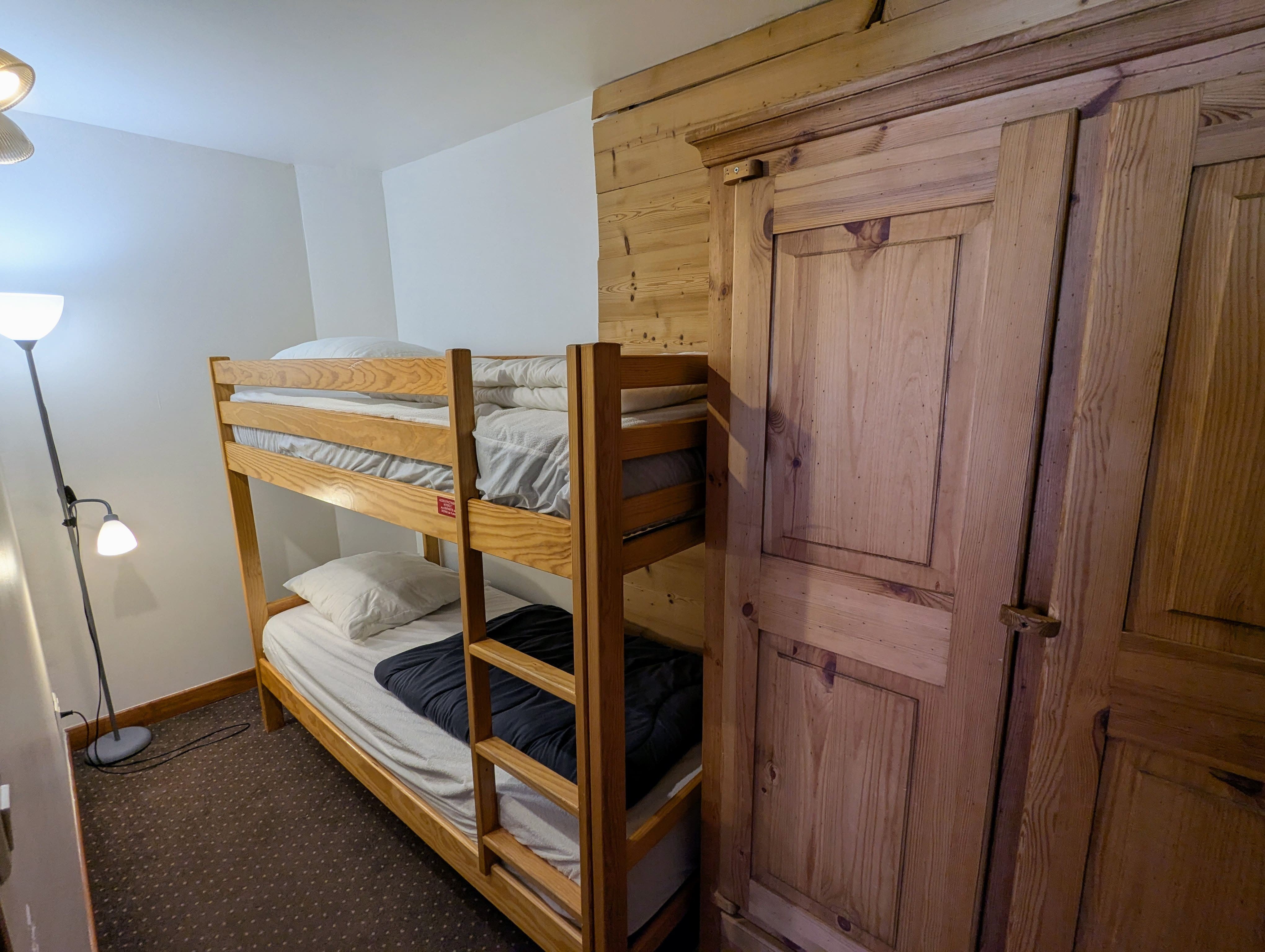 une double (140x190), une de 4 personnes avec 1 lit double (140x190) et 2 lits superposés (80x190), 2 lits superposés (80x190) avec garde robe dans chaque chambre.