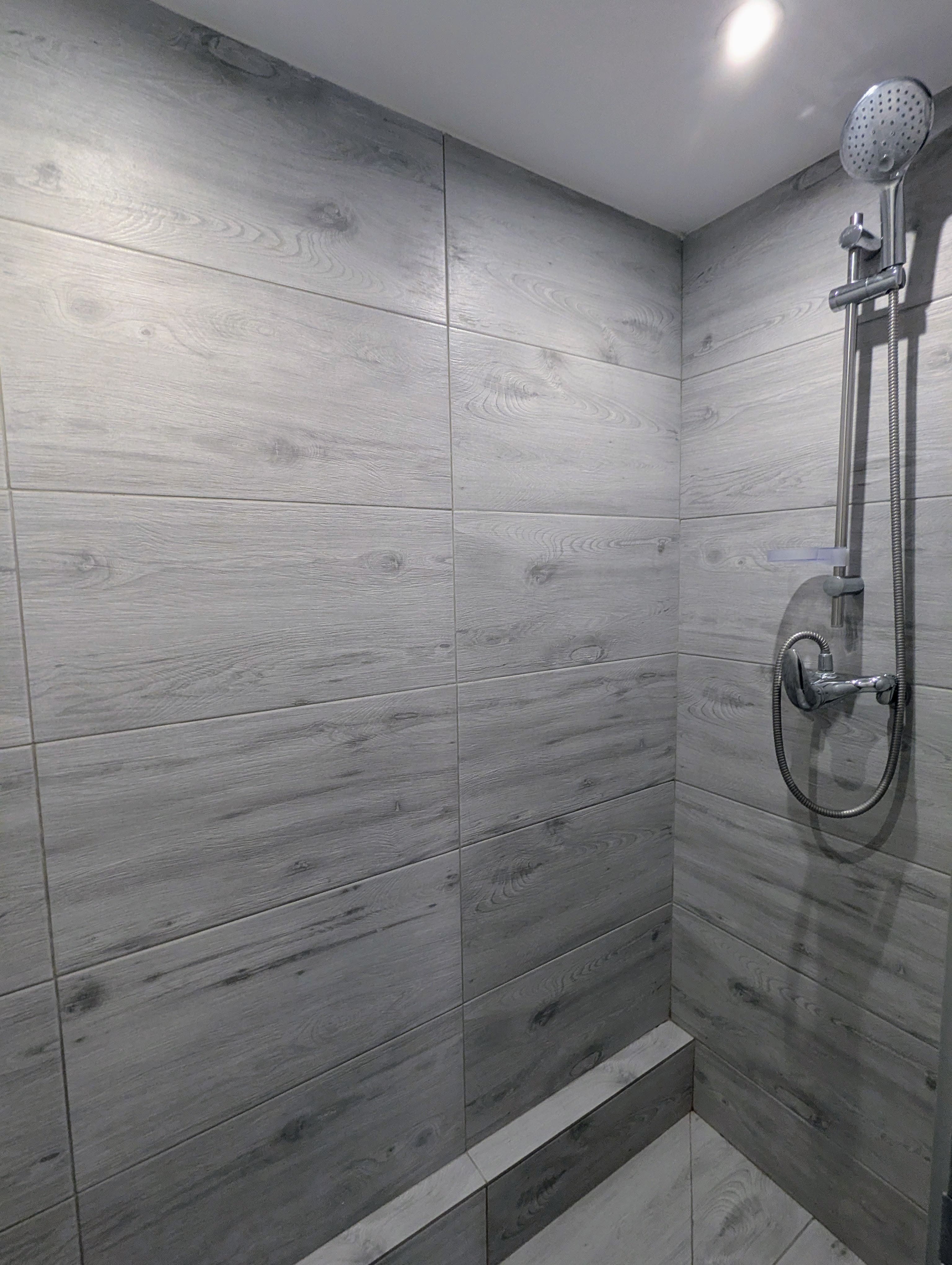 Cuisine semi-ouverte, rénovée et bien équipée, salle de douche et WC séparé complètent ce niveau, -