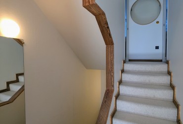 À l’étage supérieur : palier avec placard, deux chambres lumineuses donnant sur le chemin à l’arrière de la résidence, ainsi qu’une salle de bains avec lave-linge.