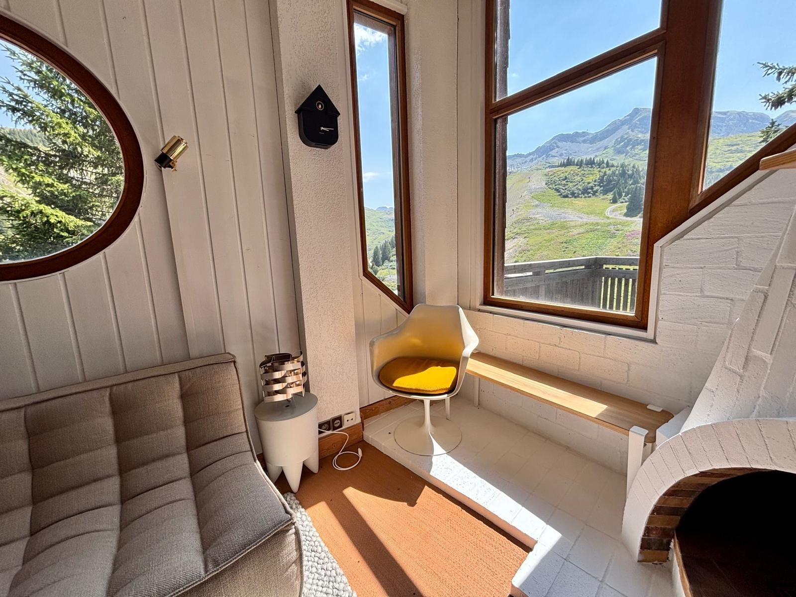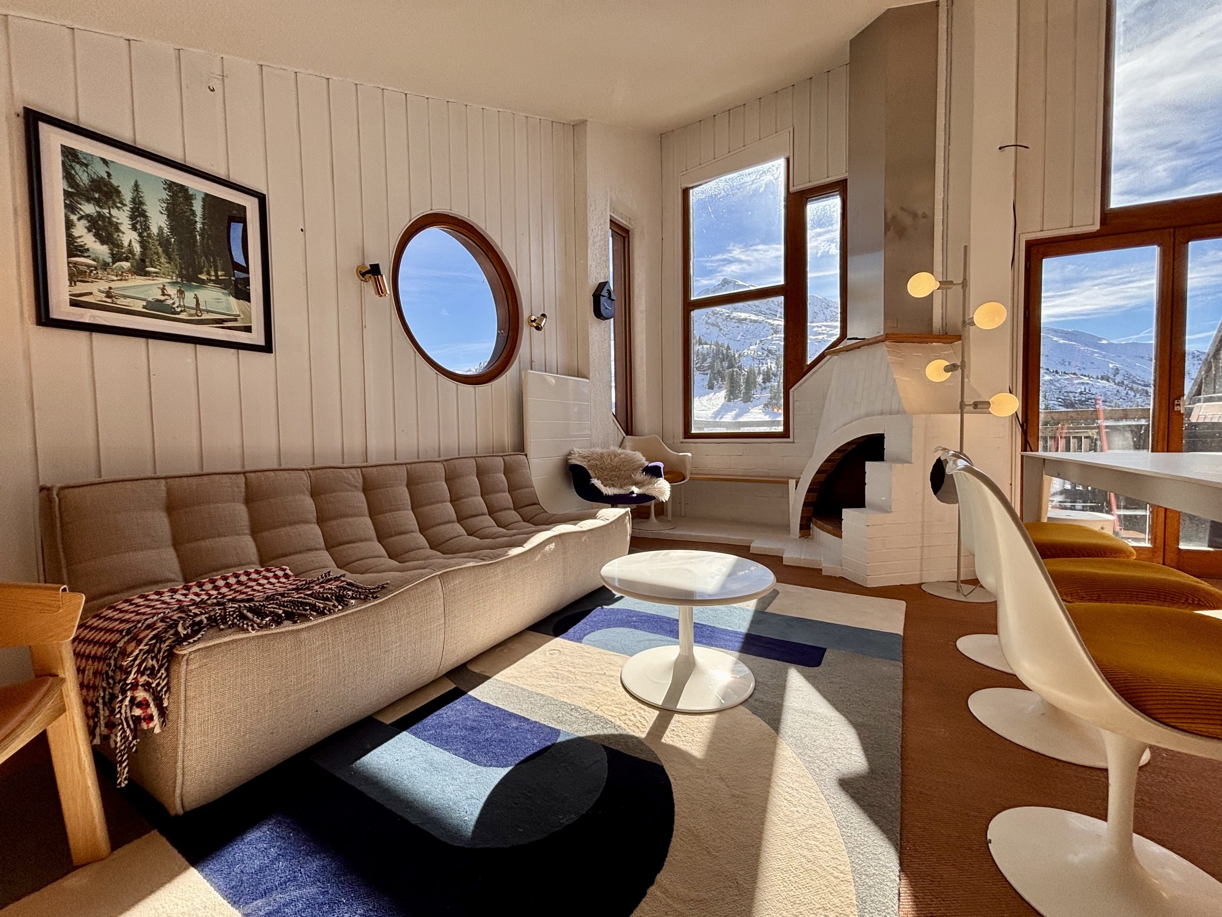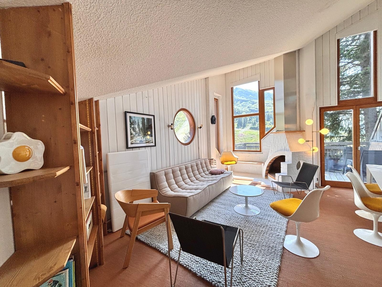 Facing due south with no overlooking neighbors, this distinctive “mushroom” chalet is one of the original architectural gems of Avoriaz. Designed by Jacques Labro, the resort’s founding architect, its fan-shaped layout and iconic Avoriaz-style windows flood the interiors with light and frame spectacular panoramic views, both from the living areas and the spacious sun terrace. A truly unique opportunity to experience a piece of Avoriaz history.