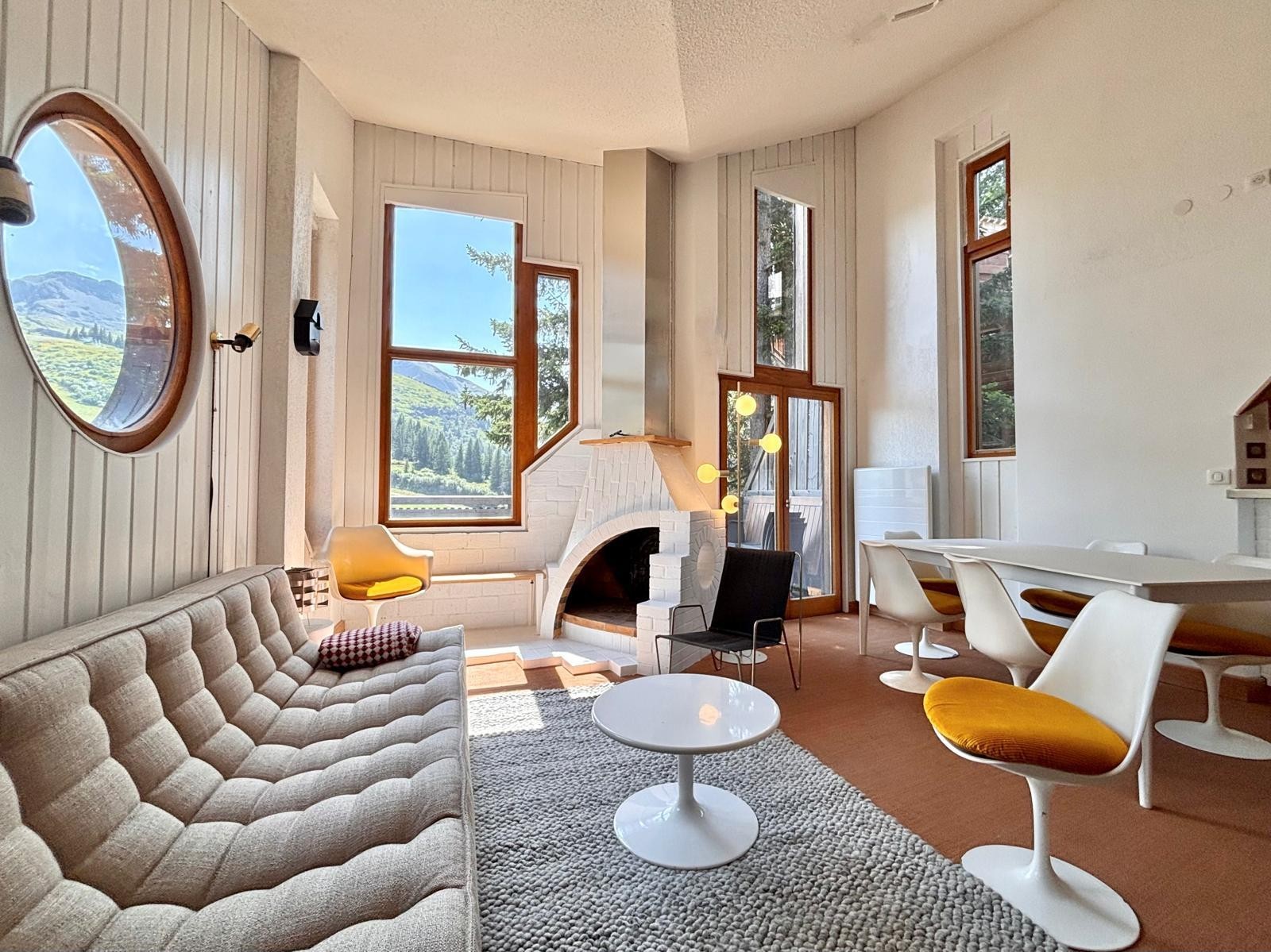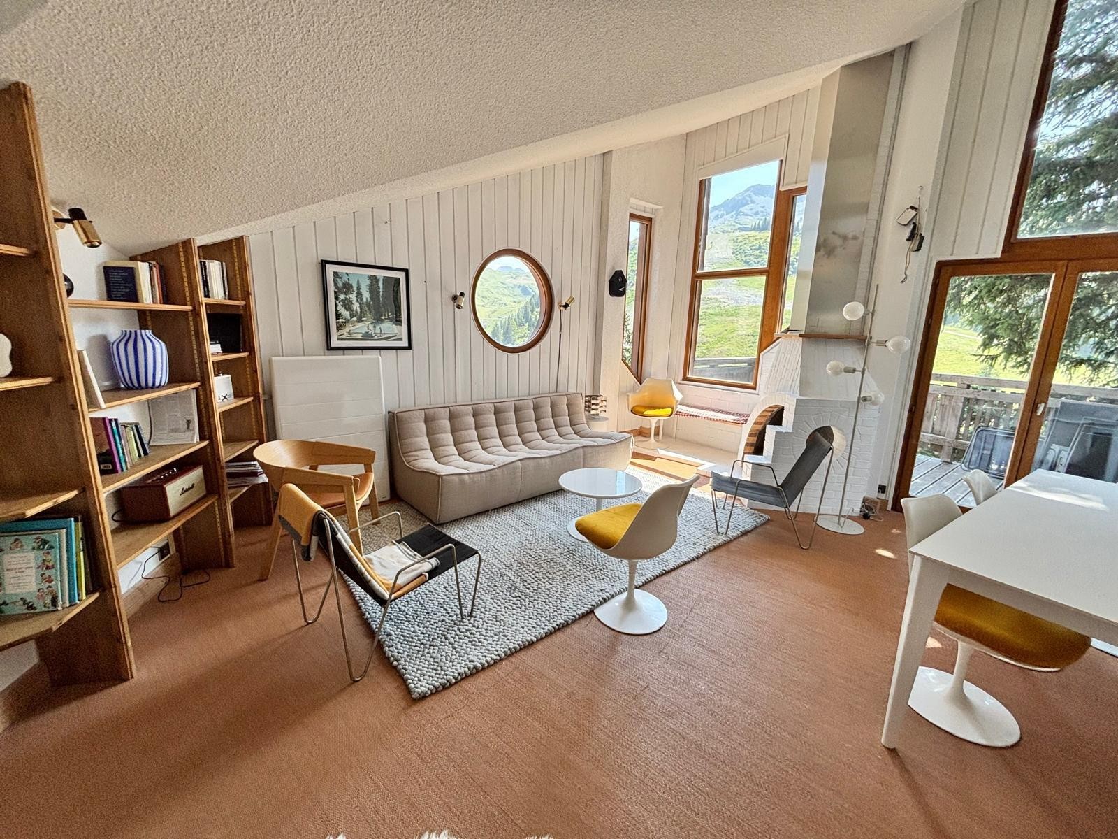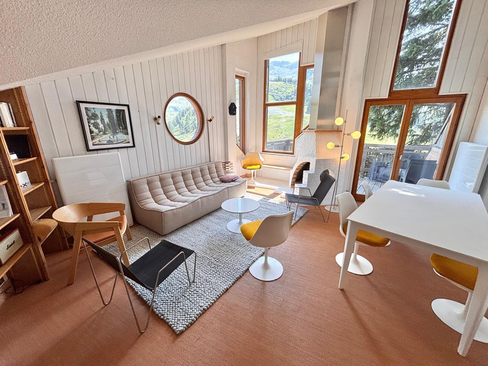 Facing due south with no overlooking neighbors, this distinctive “mushroom” chalet is one of the original architectural gems of Avoriaz. Designed by Jacques Labro, the resort’s founding architect, its fan-shaped layout and iconic Avoriaz-style windows flood the interiors with light and frame spectacular panoramic views, both from the living areas and the spacious sun terrace. A truly unique opportunity to experience a piece of Avoriaz history.