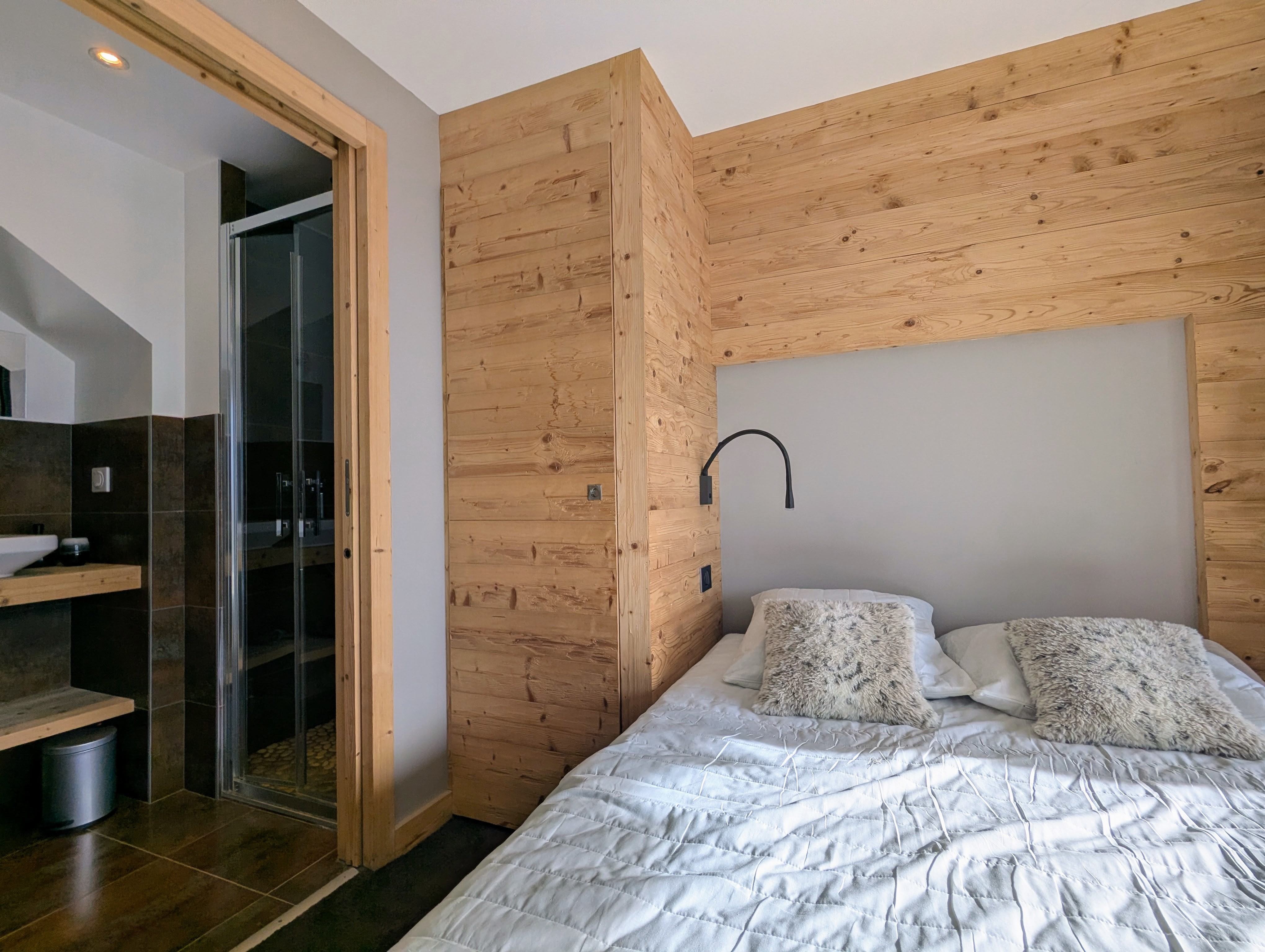 Chambre double (lit 160x200 cm) avec salle de douche privative.