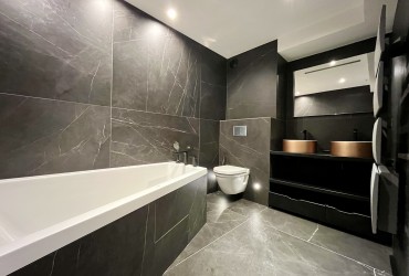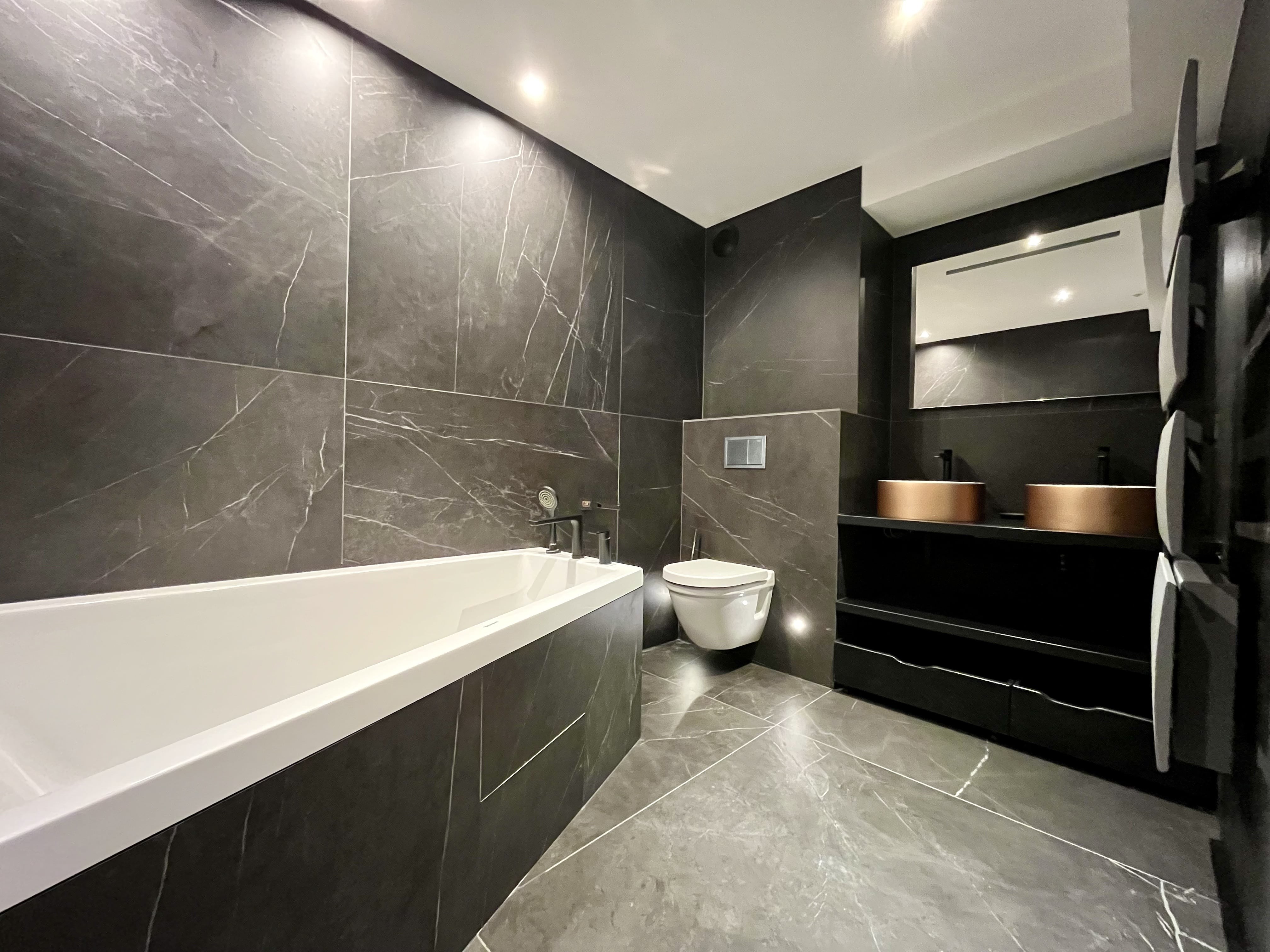 - À l’étage, une large et lumineuse chambre double avec bureau et balcon privatif, une chambre avec 2 lits superposés ainsi qu’une salle de bain spacieuse avec baignoire et WC,