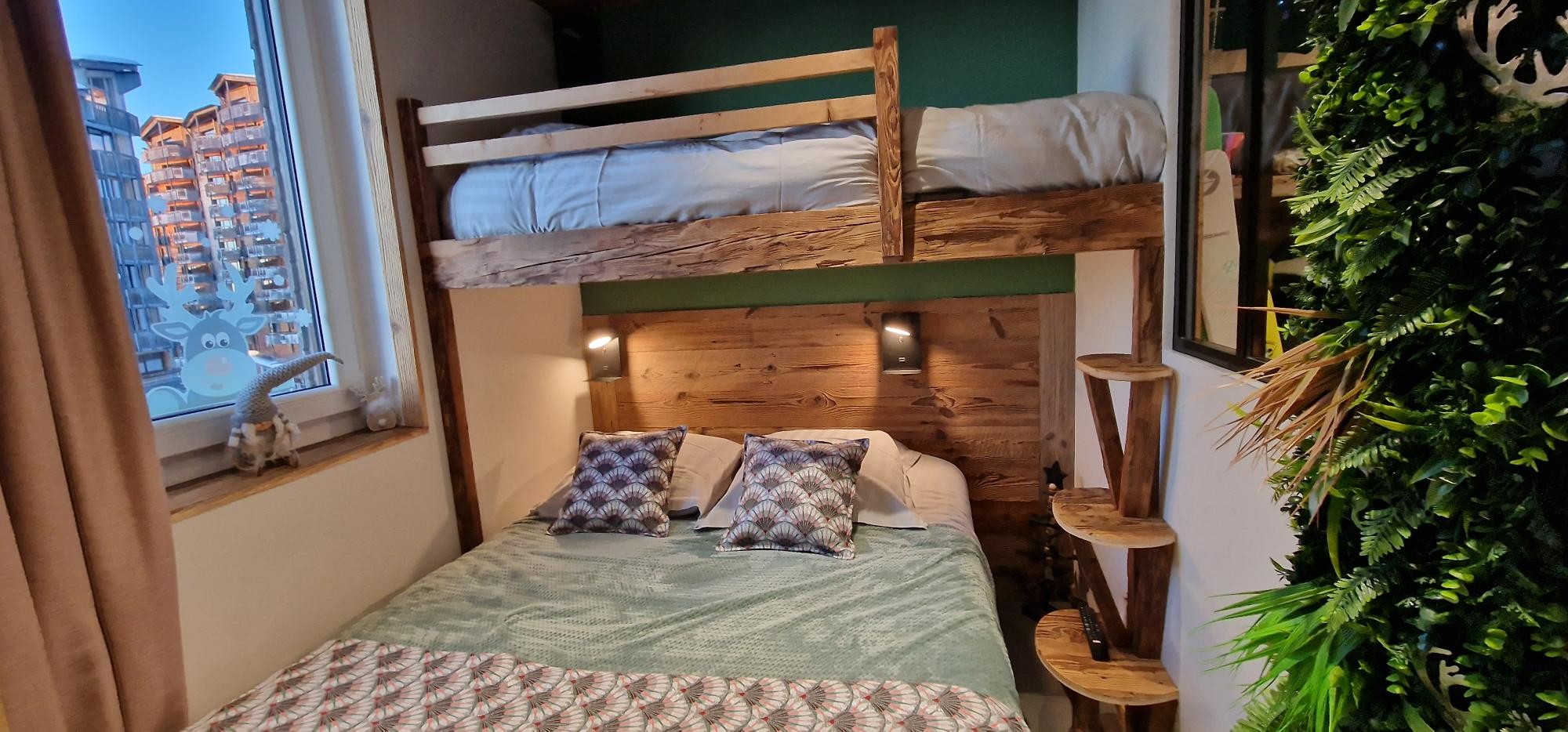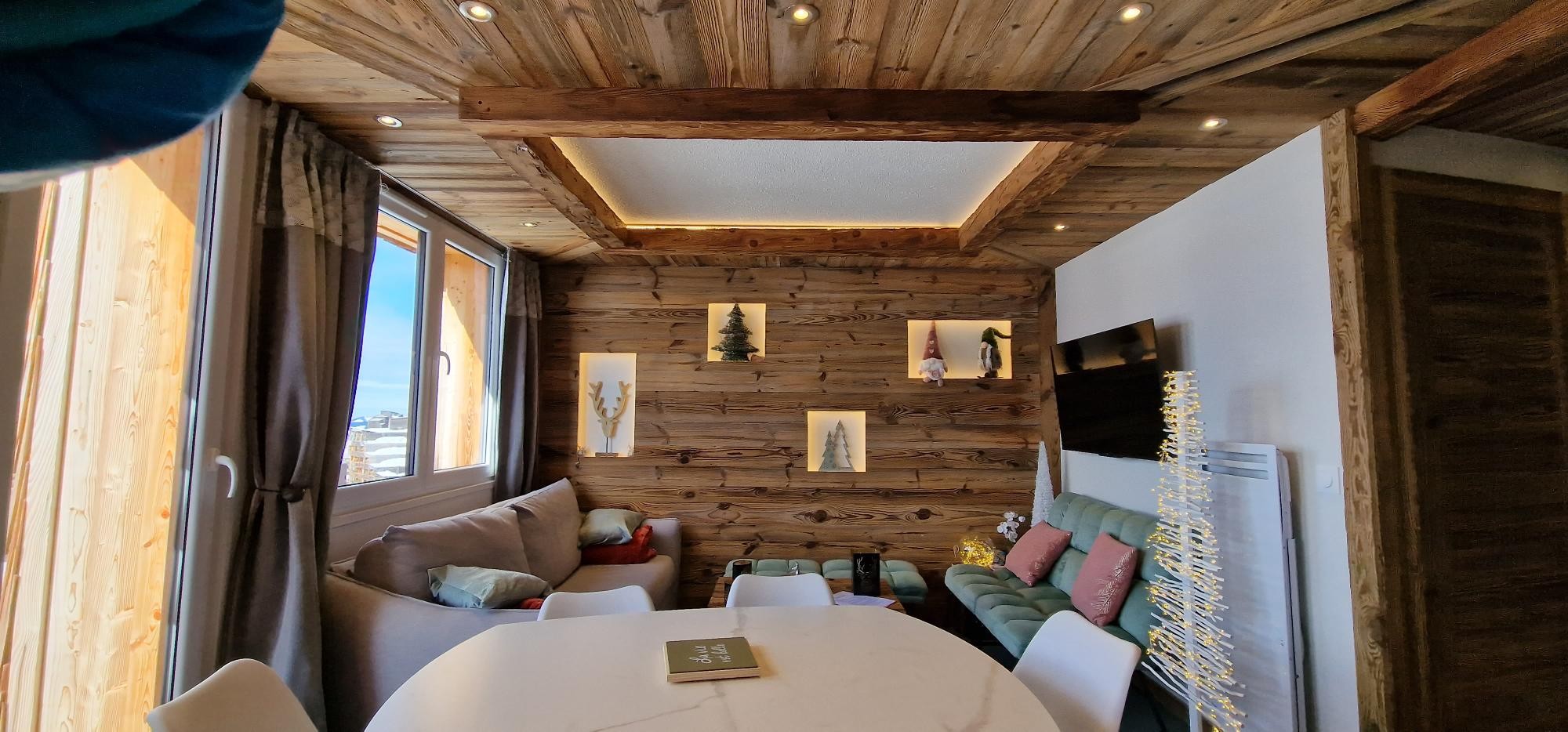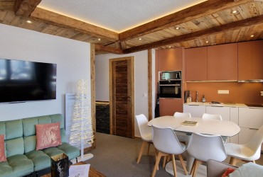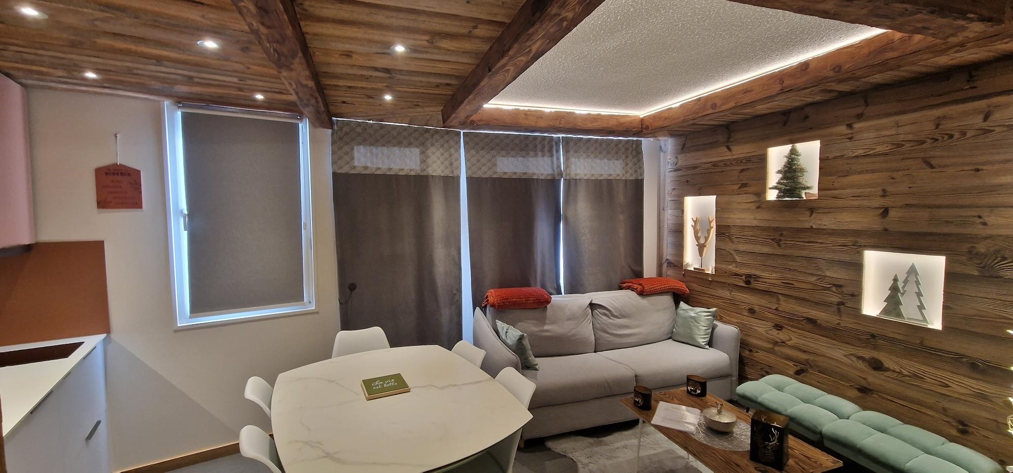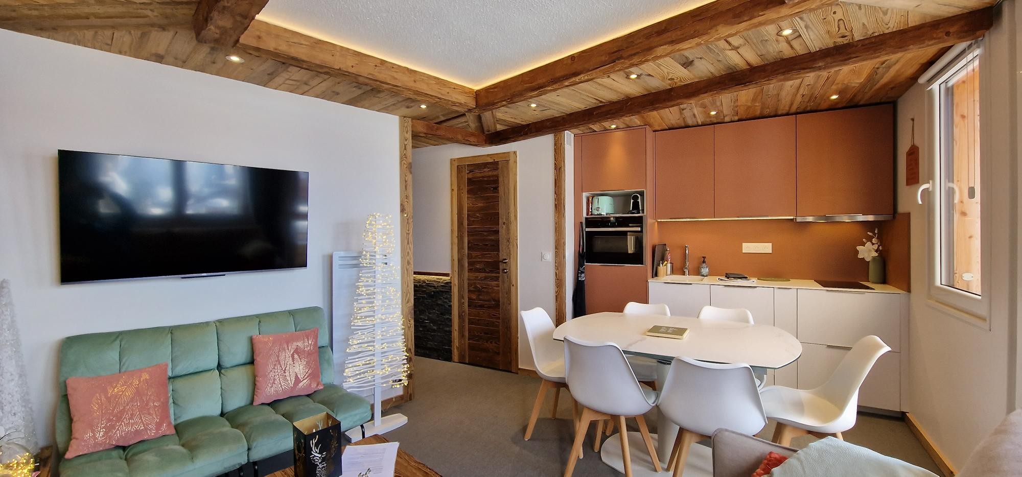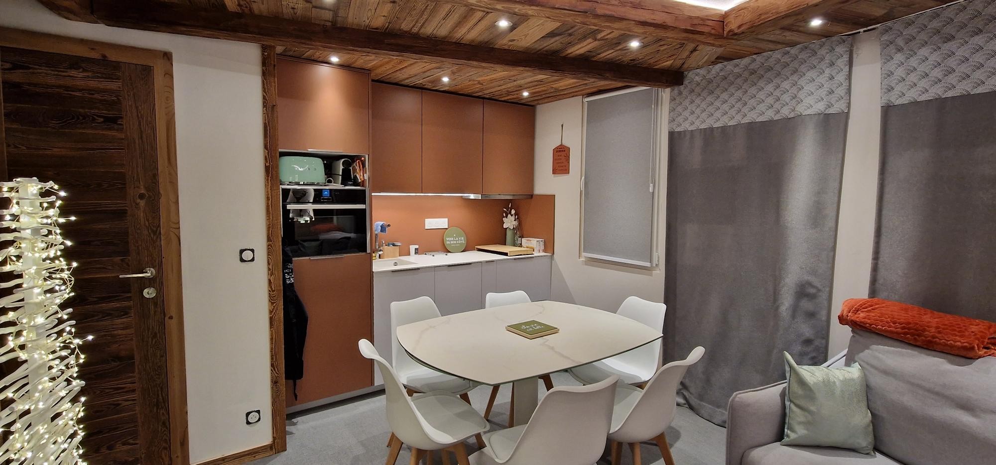 Un intérieur élégant où le bois et les matériaux modernes se marient harmonieusement pour créer une atmosphère conviviale et raffinée. L’appartement offre tout le confort nécessaire pour un séjour en famille ou entre amis.