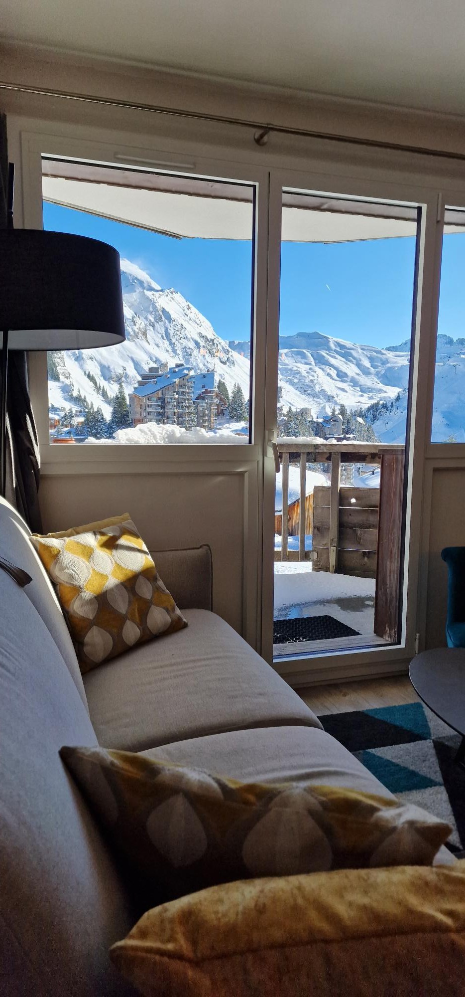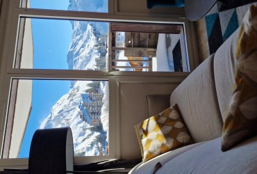 Balcon avec vue imprenable sur les massifs et transats pour des moments de détente