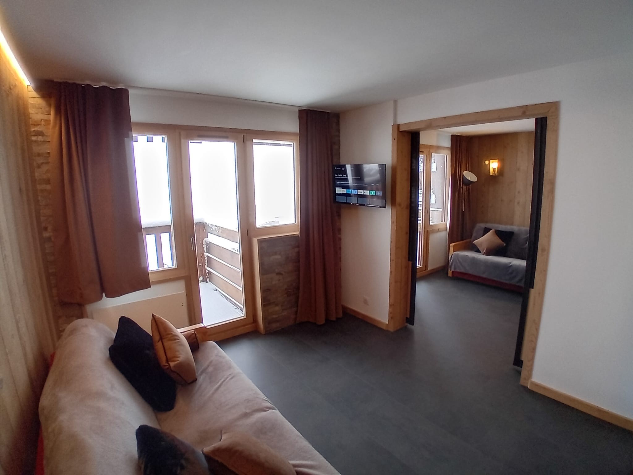 L'appartement est au 5 ème étage de la résidence, il dispose de 3 balcons de taille confortable (près de 4m2 chacun), dont 2 sont réunis entre eux, ainsi que de la jouissance d'un casier à ski équipé de sèche-chaussures au rez-de-chaussée de la résidence.